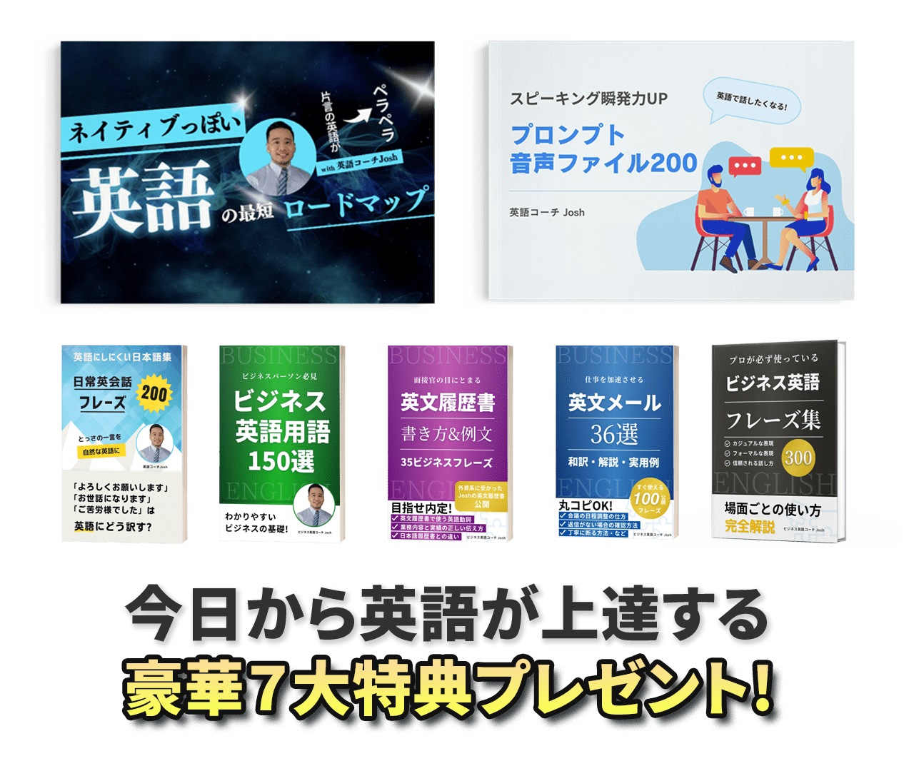 英語コーチJoshのプログラムでは、リアルな英語スキル(理論ではなく実践的なスキル、つまりあなたが日常や仕事で本当に使える英語力を、現実的な方法で身につけます。